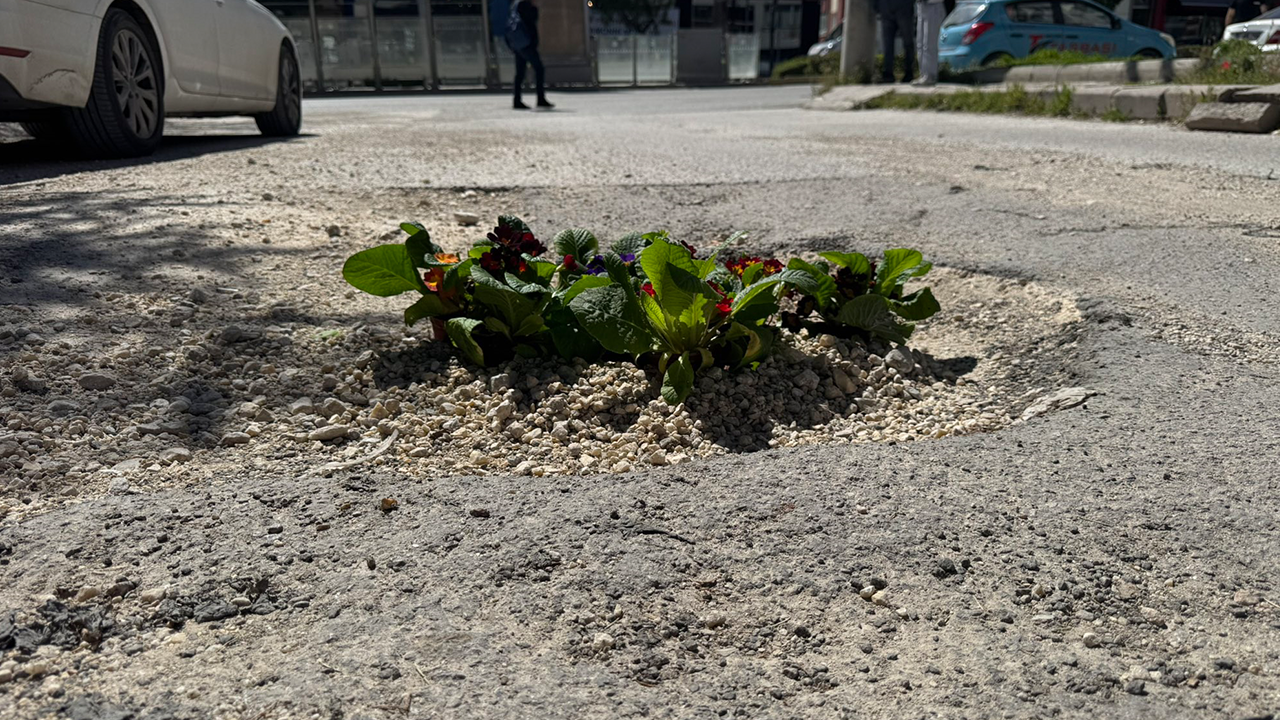 Şimşek çukurun içine çiçek yerleştirilirken çektiği videoyu "Tepebaşı Belediyesinin asfaltlamadığı çukurları belediye meclis üyeleri olarak güzelleştirme kararı aldık" sözleriyle yayınladı.