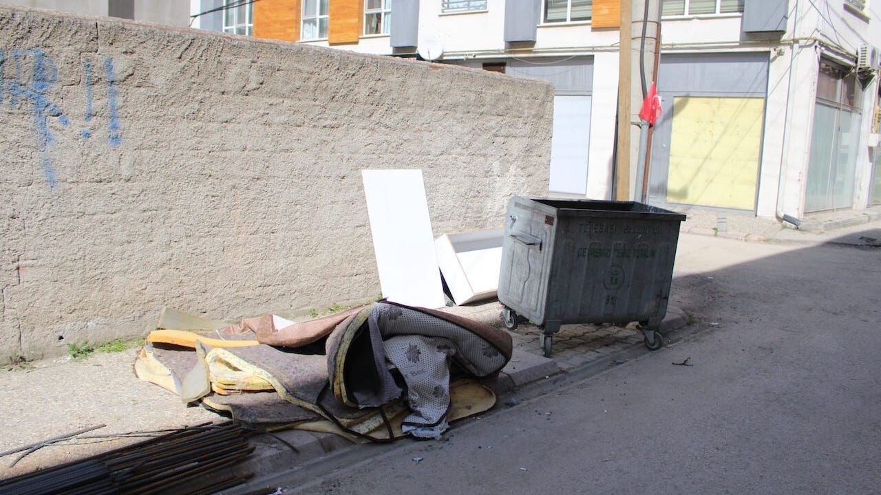 Eskişehir'in Tepebaşı İlçesi Mustafa Kemal Paşa Mahallesinde çöp konteynerinin yani koyulan atıl eşyalar çirkin görüntüye neden oluyor.