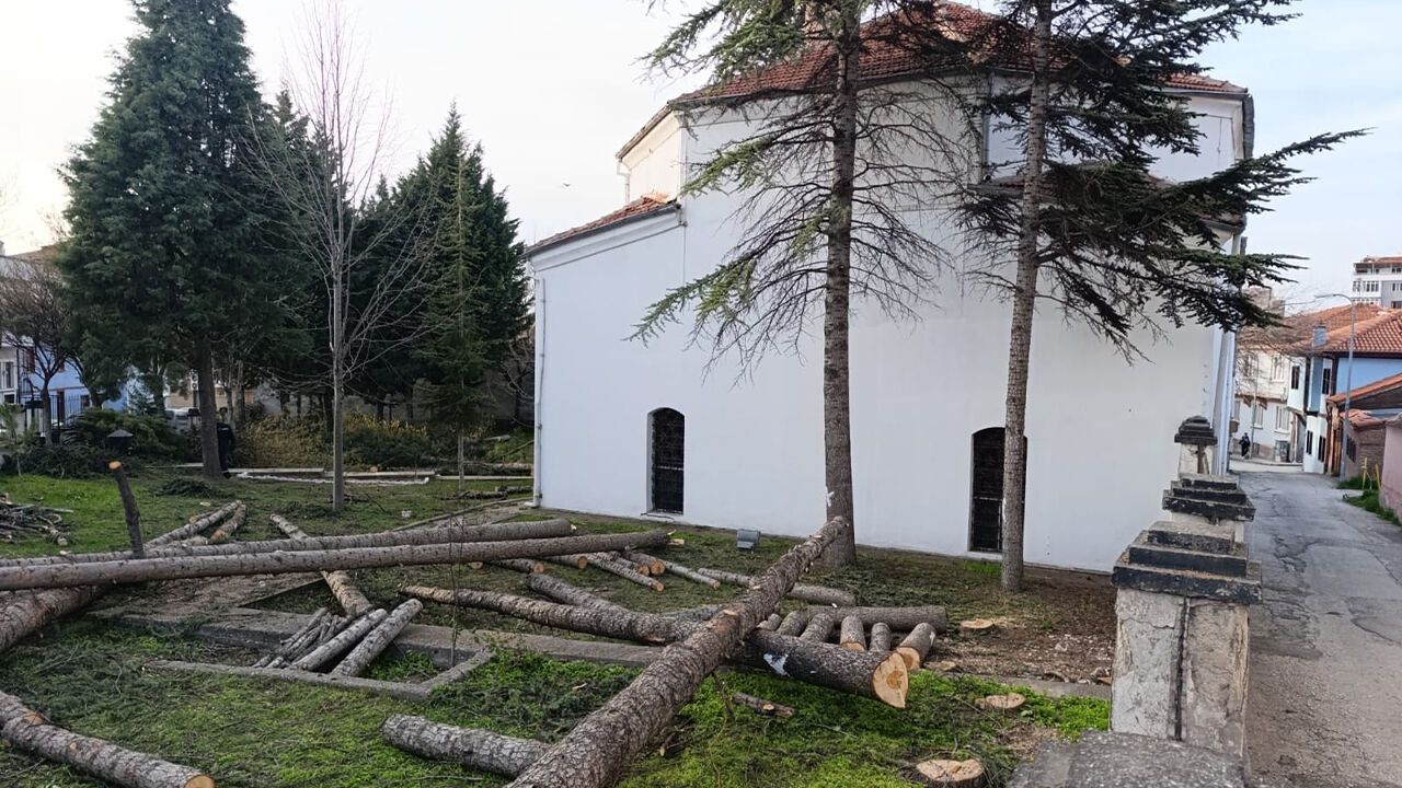 Eskişehir Odunpazarı’nda bulunan Ak Camii bahçesindeki 25 genç ve sağlıklı ağaçlar kesildi.