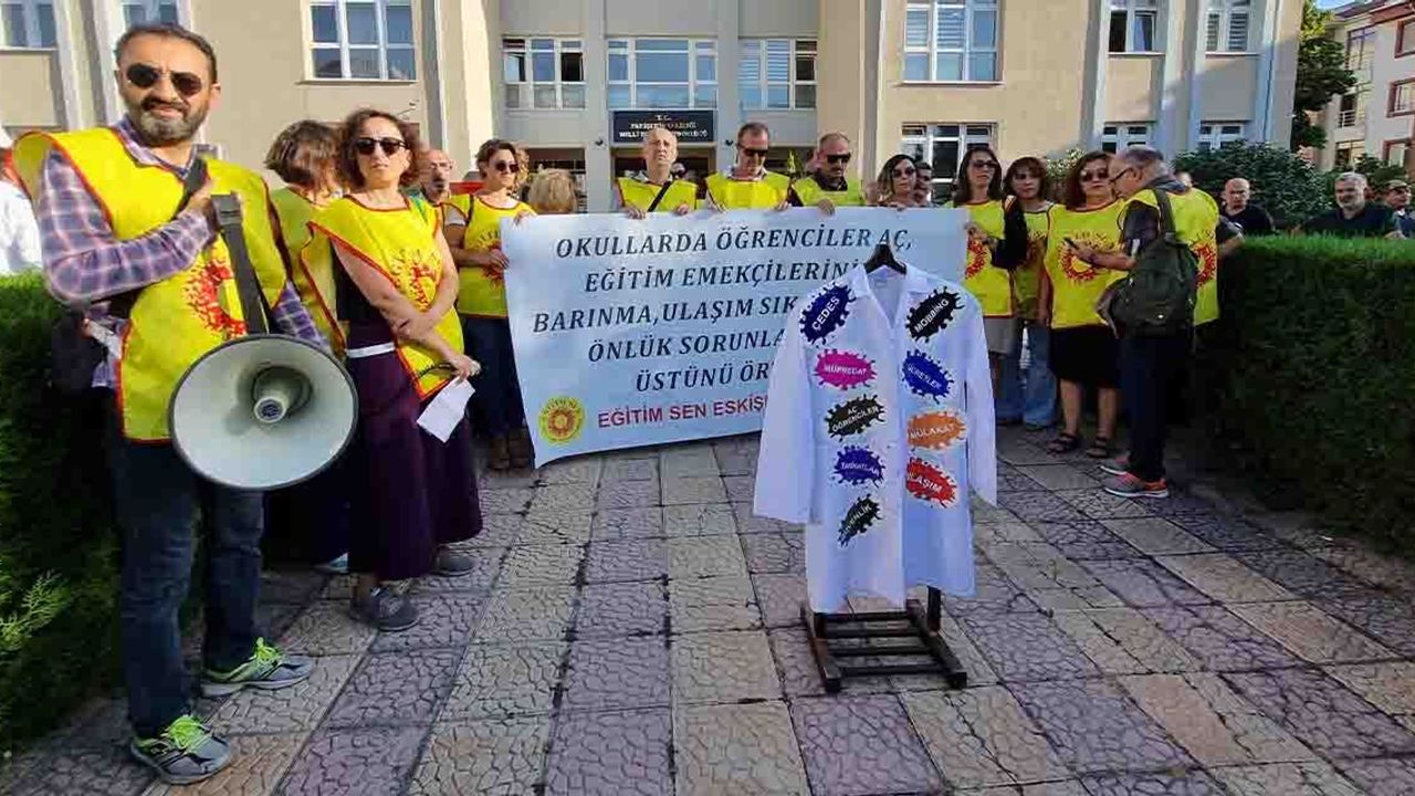 MEB tarafından yapılan açıklama ile Öğretmenler Günü'nde öğretmenlere ‘öğretmen önlüğü’ dağıtılacağı bildirildi. Bu haber sonrasında Eğitim Sen Eskişehir Şube Başkanı Faik Alkan ve sendika üyeleri Eskişehir İl Milli Eğitim Müdürlüğü önünde bir araya gelerek kararın ‘iyi niyetli’ olmadığı gerekçesiyle tepkilerini ortaya koyarak karara karşı olduklarını vurguladı.