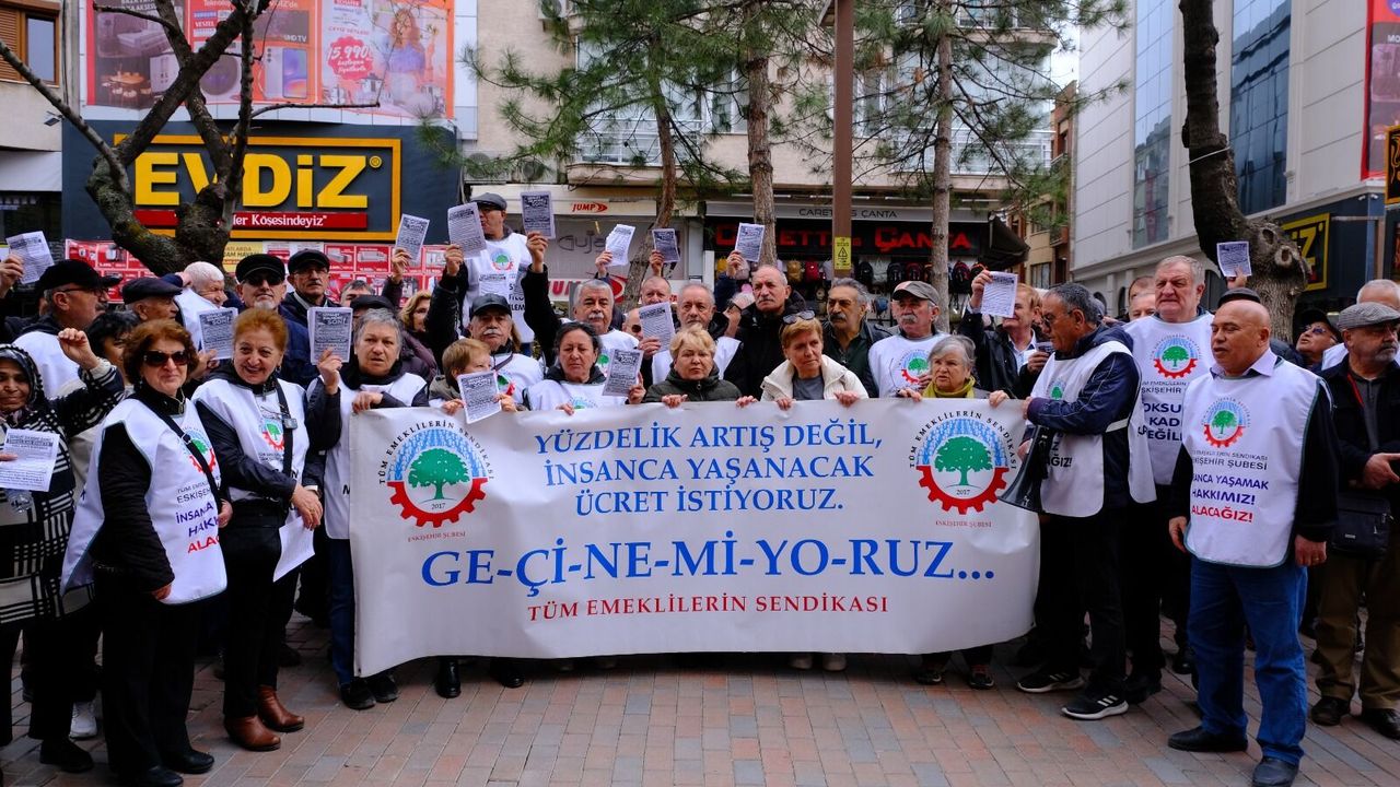 Tüm Emeklilerin Sendikası Eskişehir Şubesi’nin çağrısıyla Hamamyolu Caddesi’nde bir araya gelen emekliler, insanca yaşayabilecekleri bir ücret talep etti. Sendika adına açıklama yapan Tüm Emeklilerin Sendikası Eskişehir Şubesi Temsilciler Kurulu Üyesi Neriman Eken, 19 Nisan’da Dikili’de düzenlenecek bölge mitingine de Eskişehir’den katılım saplayacaklarını ifade etti.