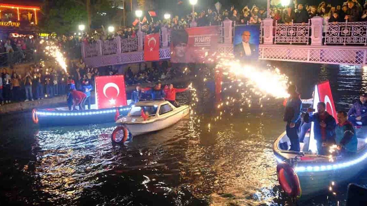 Etkinlikler kapsamında Porsuk Çayı’nda flyboard, ışık gösterileri, marşlar eşliğinde düzenlenen Fener Alayı’na, Eskişehirliler büyük ilgi gösterdi. Porsuk Çayı üzerindeki köprülerde ve kıyılarda yerini alan binlerce Eskişehirliye, Büyükşehir Belediyesi görevlileri tarafından Türk bayrakları dağıtıldı.
