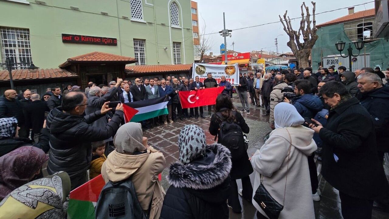 Cuma namazı sonrası Çarşı Camii önünde platform adına açıklamayı yapan TÜGVA Eskişehir İl Temsilcisi Mahmut Öksüzoğlu, siyonist rejimin hukuk tanımaz tavrına sert tepki göstererek, tüm dünyayı bu zulme karşı tek yürek olmaya davet etti. Konuşmasına siyonist rejimin planlı katliamlarına dikkat çekerek başlayan Öksüzoğlu, "Akıl almaz bir dönemi yaşamaktayız. Tüm değerlerin yok sayıldığı, insanlığın azgın ve sapkın bir ideoloji tarafından rehin alındığı bir zaman diliminden geçiyoruz. Ancak bizler esir değiliz ve bu esaret girişimine karşı kayıtsız kalmayacağız," dedi.