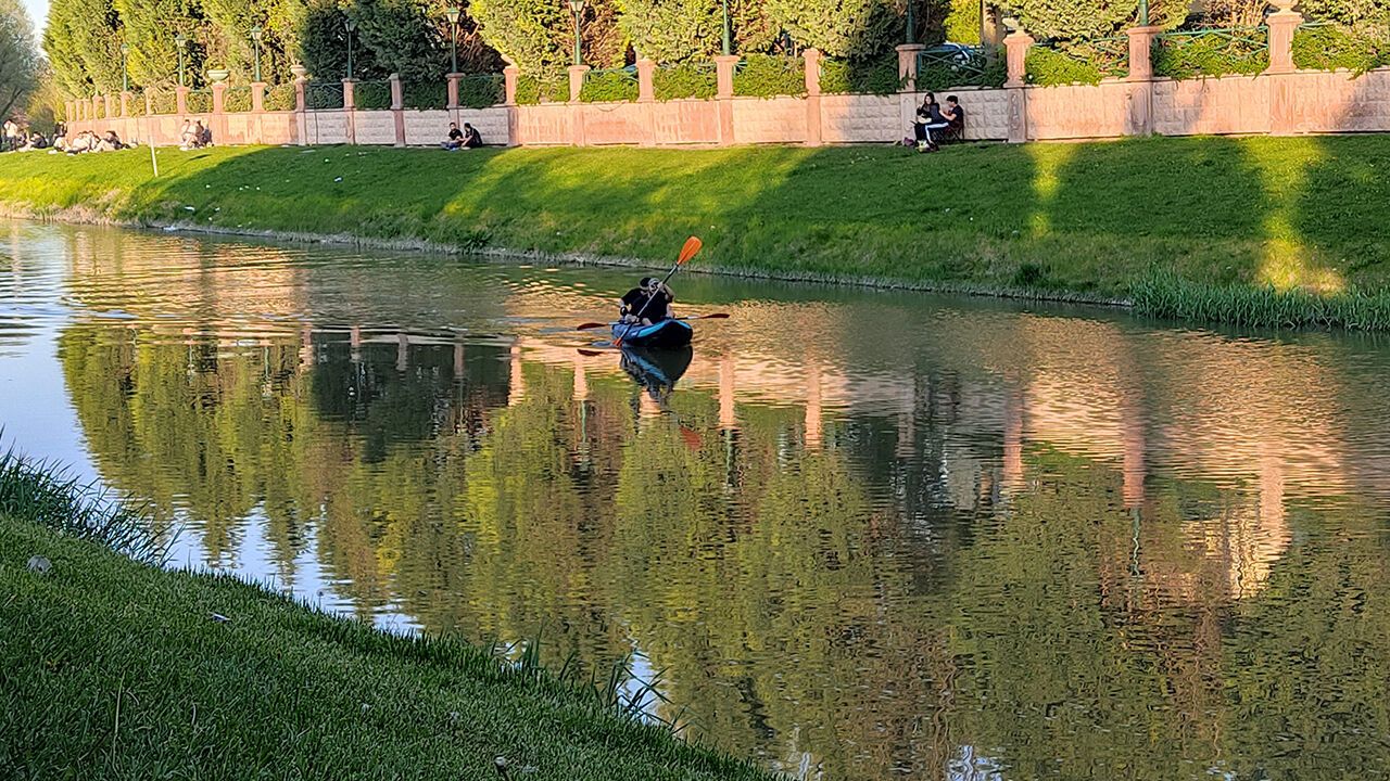 Eskişehir’in Odunpazarı ilçesinde bulunan ve eşsiz doğasıyla bilinen Kanlıkavak Parkı'nda iskeleden kanolarıyla suya açılan iki genç, Porsuk Çayı boyunca kürek çekerek keyifli anlar yaşadı.