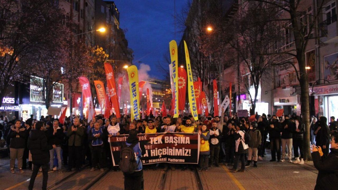Emek ve Demokrasi Platformu Espark Alışveriş Merkezi önünde bir araya geldi. Bir araya gelen binlerce kişi Ulus Anıtı'na kadar yürüdü.