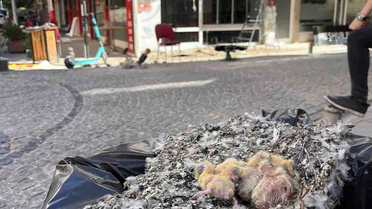 İçinde 5 yavrunun bulunduğu güvercin yuvası, bilinmeyen bir sebeple çöp kutusunun üzerine bırakıldı. Çevreden geçen vatandaşlar karşılaştıkları manzara karşısında hayrete düşerken, çöpe atılan yavru güvercinler ihbar üzerine gelen belediye yetkilileri tarafından barınağa götürüldü.