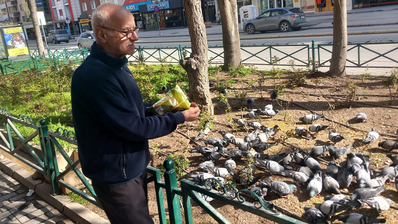Eskişehir'in Eskibağlar Mahallesi'nde bir çay ocağı işleten Burhan Akyol'un işletmesinin önüne her sabah güvercinler geliyor. Akyol, yıllardır özel olarak satın aldığı yemler ile güvercinlerin karnını doyuruyor.