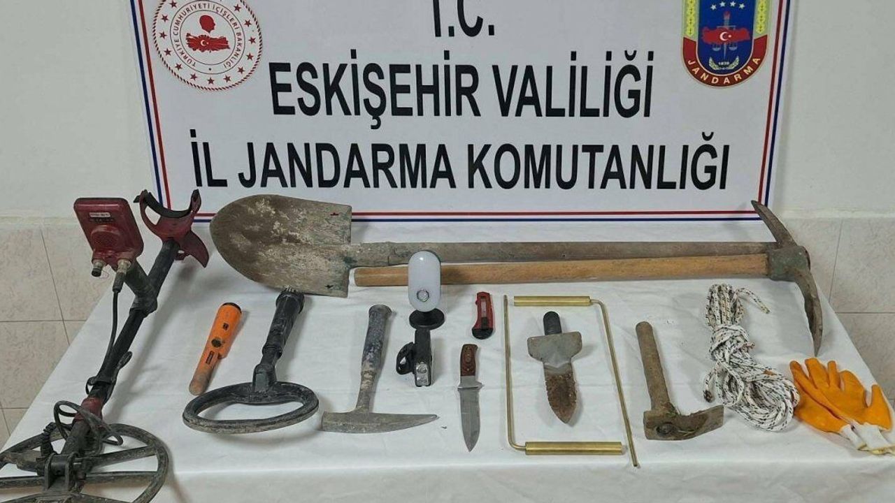 Eskişehir İl Jandarma Komutanlığına bağlı birimler tarafından yapılan çalışmalar neticesinde Odunpazarı ilçesinde şüphelilerin define bulmak amacıyla izinsiz kazı yapacağı bilgisi alındı. Anadolu Mirası Operasyonları kapsamında 3 şüpheli kaçak kazı yaparken suçüstü yakalandı. Kazı alanında yapılan incelemelerde şüphelilere ait olduğu tespit edilen 3 adet dedektör, 8 metre halat, 1 adet kürek, 1 adet kazma ve 10 adet muhtelif kazı malzemesi ele geçirildi. Şüpheliler hakkında adli makamlarca soruşturma başlatıldı.
