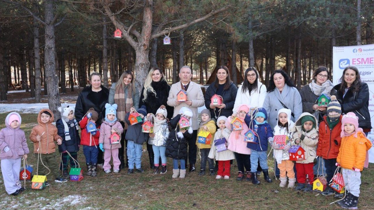 Etkinlik sonunda öğretmenleri ve aileleriyle birlikte parkı gezen çocuklar, kendi elleriyle hazırladıkları yuvaları ağaçlara yerleştirdiler. Gökyüzündeki kuşlara yuva olan bu renkli evler, hem bir anma simgesi hem de doğaya bir hediye olarak parktaki yerini aldı.