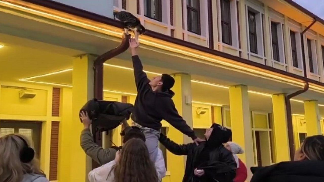 Olay, dün akşam saatlerinde Hoşnudiye Mahallesi İstasyon Caddesi'nde meydana geldi. Eskişehir Tren İstasyonu'nun çatısından bağıran bir kedi, çevredeki vatandaşların dikkatini çekti. Bir grup genç, aslında kendi inebileceği bir yükseklikte olan sevimli hayvanı kurtarmak için seferber oldu. Birbirlerinin omuzlarına çıkarak kediyi bulunduğu yerden almaya çalışan gençler, aşağıya çantalarını açarak hayvanın düşme ihtimaline karşı tedbir aldılar. Kedi ise bir ileri bir geri giderek gençlerle adeta oyun oynadı. Tüm çabalara rağmen 'başarısız' şekilde sonuçlanan ilginç kedi kurtarma operasyonu, çevredeki bir vatandaş tarafından cep telefonu kamerası ile saniye saniye kayıt altına alındı.