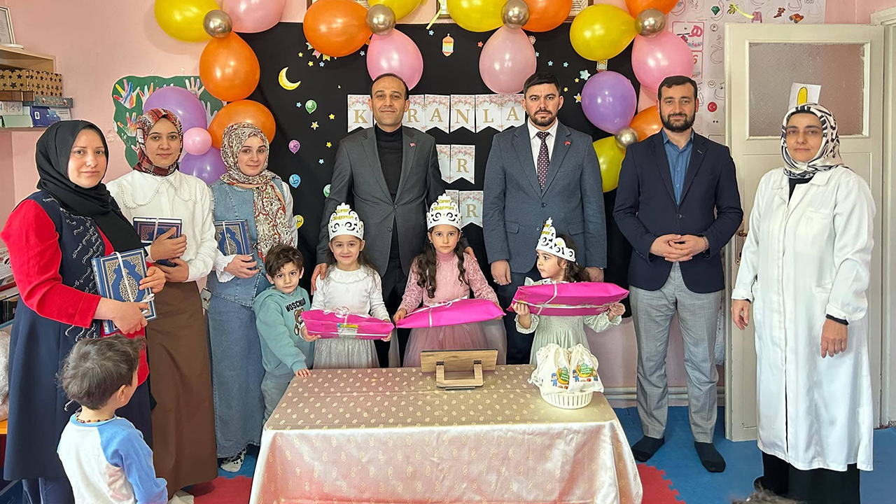 Daha sonra minik öğrencilere taç takılarak, Kur'an-ı Kerim ve hediyeleri verildi. Çocukların Kur'an-ı Kerim tilaveti ile devam eden program, pasta kesimi ve hatıra fotoğrafı çekimiyle sona erdi.