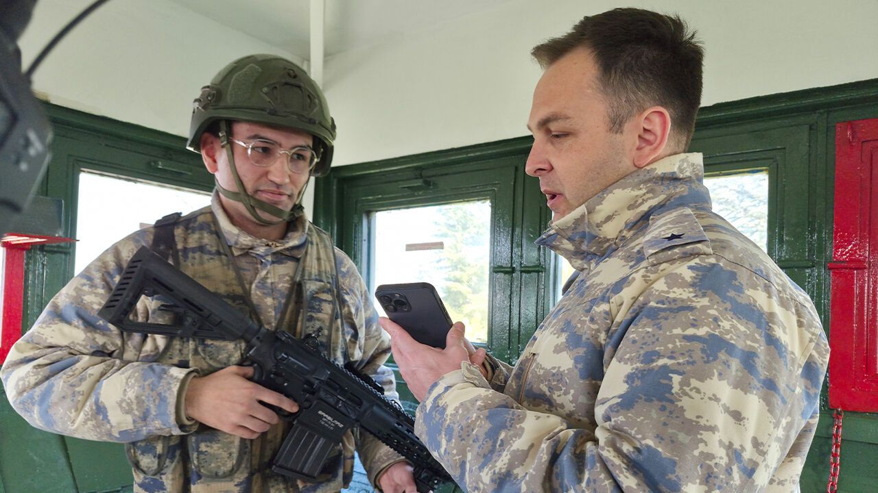 Nöbet kulesinde gözü ufukta, eli tetikte olan bir askere ise komutanından anlamlı bir sürpriz geldi. Birliği denetleyen komutanı, görev başındaki askeri cep telefonundan annesiyle görüştürdü. Hattın ucunda oğlunun sesini duyan anne, sevincinden ağladı.