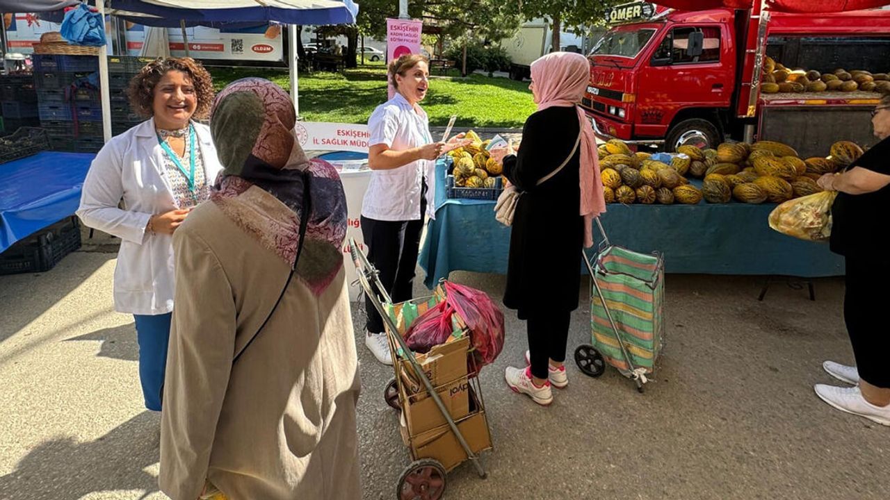Ekipler, Büyükdere Mahallesi'ndeki Pazartesi Pazarında kurulan stantta, sağlıklı hayat merkezlerinin tanıtımı yaptı. Eskişehir Valiliği ile İl Sağlık Müdürlüğü tarafından hazırlanan kadın sağlığı bilgilendirme broşürleri dağıtılarak vatandaşlar bilgilendirildi.