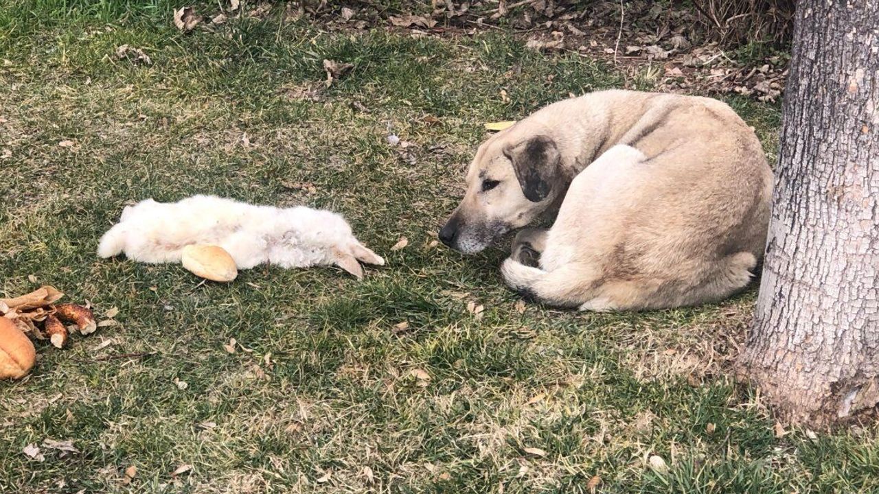 Eskişehir'de Tepebaşı ilçesine bağlı Merkez Yeni Mahalle'de bulunan Porsuk Bulvarı'nda ölü tavşanın yanında 1-2 gündür durduğu iddia edilen sokak köpeği dikkat çekiyor. Söylentilere göre bu iki sevimli hayvanın daha önceden birlikte oyun oynayarak arkadaş oldukları, tavşanın ölümünden sonra ise köpeğin yanın ayrılmadığı