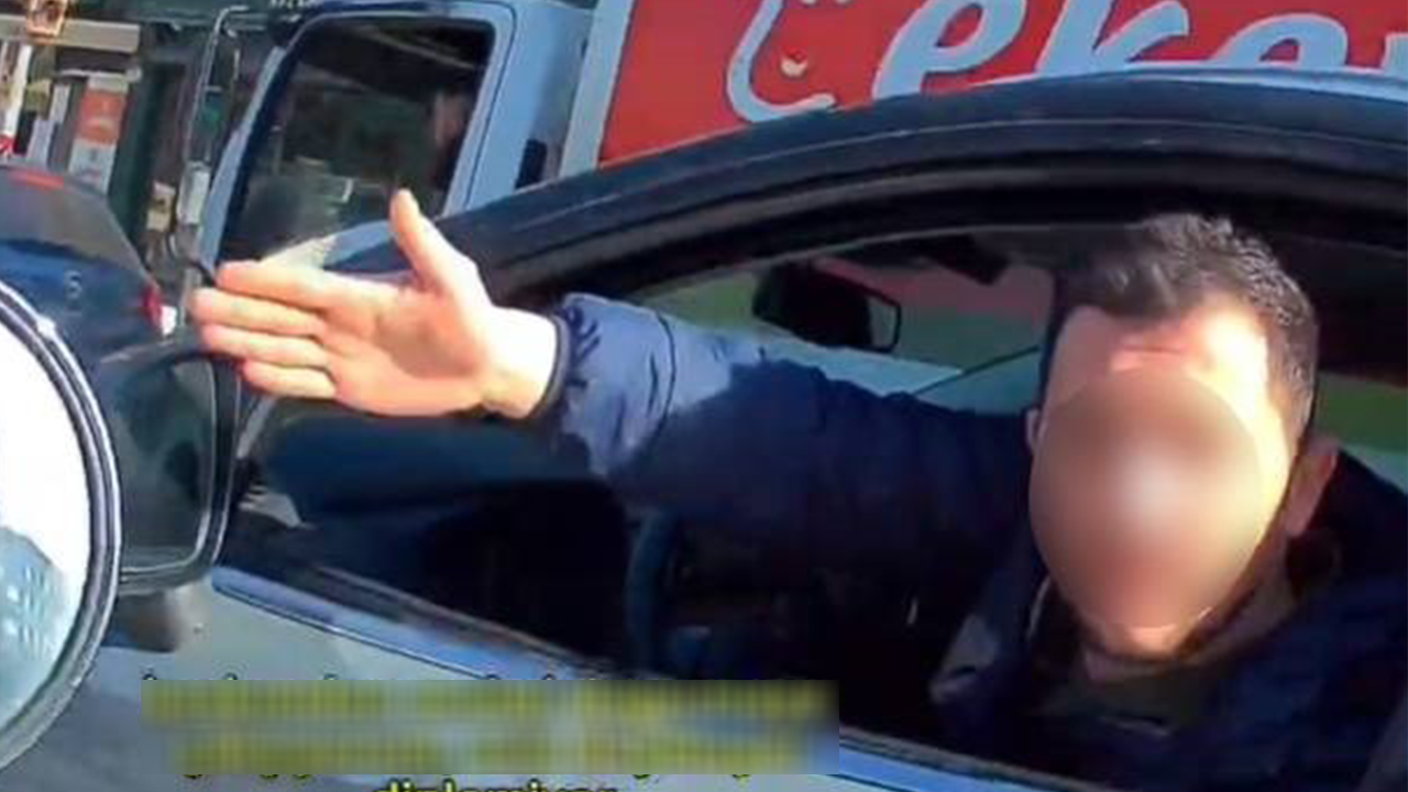 Camı açan otomobil sürücüsü, "Sağ şeride geçeceksin, solu kapatıyorsun, arkanda araba doldu" dedi. Motosiklet sürücüsü ise, "Sağ şeride geçmiyorum, kendi yolumdan gidiyorum" diyerek cevap verdi. Otomobil sürücüsü, sol şeridin hızlı gidenler için olduğunu savunurken; motosiklet sürücüsü ise, kendisinin sola döneceğini ve sinyal yaktığını, ayrıca hız sınırının 50 olduğu bölgede sol şeritten de gidilebileceğini söyledi.