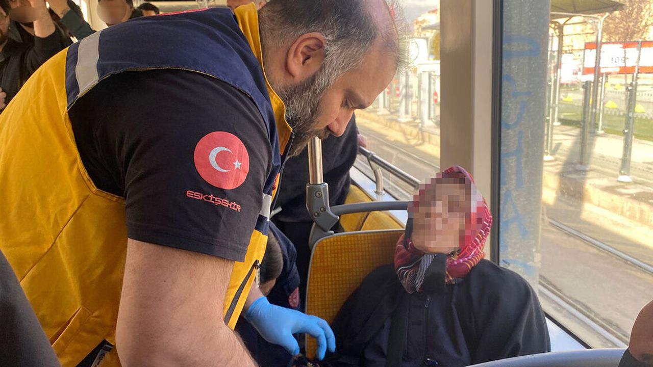 Eskişehir'de SSK - Otogar yönünde hareket eden tramvayda bulunan yaşlı kadın fenalaşarak bayıldı.