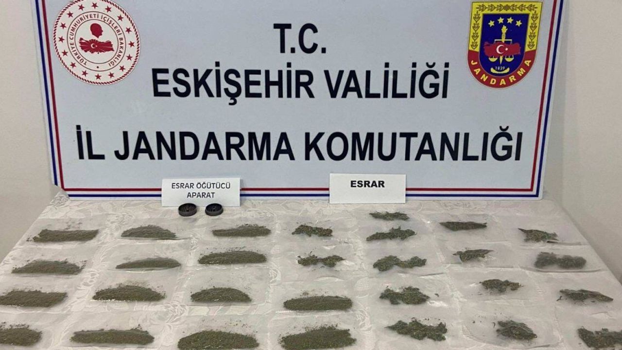 Edinilen bilgilere göre, Eskişehir İl Jandarma Komutanlığı ekiplerince gerçekleştirilen çalışmalar sonucunda Tepebaşı İlçesi’nde ikamet eden B.K. ve A.T.B. isimli 2 şahsın ellerinde bulunan uyuşturucu maddeyi satmak için müşteri aradığı tespit edildi. Cumhuriyet Başsavcılığı koordinesinde İl Jandarma Komutanlığı’na bağlı ekipler tarafından şahısların evine yapılan operasyon sonucu, satışa hazır halde 29 ayrı vakumlanmış poşet içerisinde toplam 225 gram esrar ve 1 adet esrar öğütücü aparat ele geçirildi.
