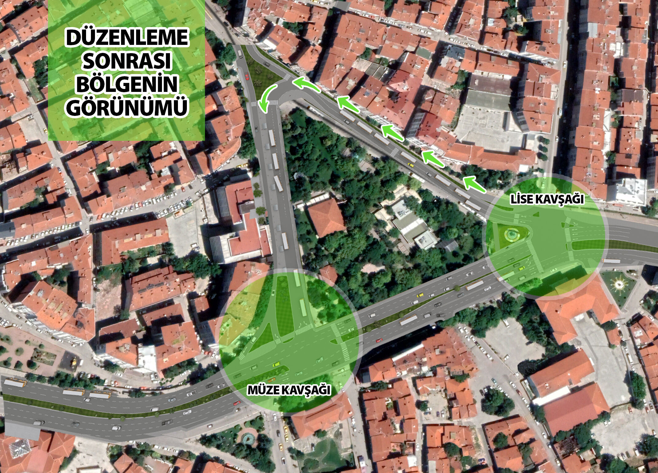 Eskişehir Büyükşehir Belediyesi, Odunpazarı ve Atatürk Lisesi kavşaklarında özellikle pik saatlerde yaşanan trafik sıkışıklığını çözmek ve ulaşımı kolaylaştırmak için yapacağı kavşak düzenlemesine başlıyor.