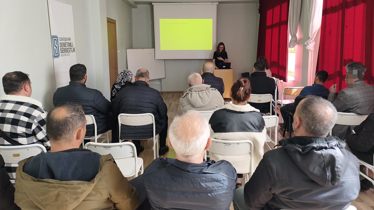 Eskişehir Denetimli Serbestlik İl Müdürlüğü'nün çalışmaları sürüyor. Bu kapsamda, Odunpazarı İlçe Sağlık Müdürlüğünde görevli Eczacı Melek Kurtaran tarafından yükümlülere yönelik 'Bilinçli İlaç Kullanımı Semineri' düzenlendi. Seminerde, ilaçların doğru ve bilinçli kullanımı, gereksiz ilaç kullanımının zararları ile tedavi sürecinde dikkat edilmesi gereken hususlar anlatıldı.