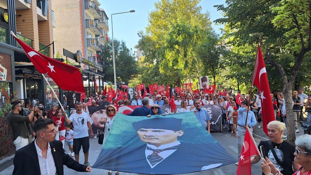 Eskişehir Atatürkçü Düşünce Derneği (ADD), Egitim-İş ve Çağdaş Yaşamı Destekleme Derneği'nin (ÇYDD) ortaklaşa olarak 30 Ağustos Zafer Bayramı’nın 103. yıl dönümünde anlamlı bir yürüyüş gerçekleştirdi. Adalar mevkiinden başlayan yürüyüş, Vilayet Meydanı’na kadar coşkulu bir şekilde devam etti. Yürüyüşe ADD Eskişehir Şube Başkanı Mehmet Avcı, Odunpazarı Belediye Başkanı Kazım Kurt, CHP İl Başkanı Talat Yalaz, Zafer Partisi İl Başkanı Hasan Demir, CHP Tepebaşı İlçe Başkanı Tevfik Yıldırım ve çok sayıda vatandaş katıldı. Yürüyüş boyunca, vatandaşlar evlerinden astıkları Türk bayrakları ve alkışlarla etkinliğe destek verdi. Vilayet Meydanı'na günün anlam ve önemiyle ilgili konuşan ADD Eskişehir Şube Başkanı Mehmet Avcı, 30 Ağustos’un Türk milletinin bağımsızlık ve özgürlük mücadelesinin simgesi olduğunu vurguladı.