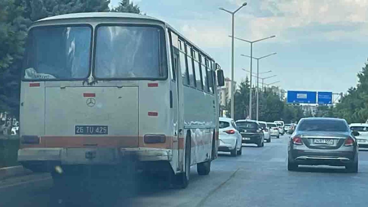 Eskişehir Büyükşehir Belediyesi’ne ait olan ve işçi taşıdığı görülen otobüsün sürücüsü her gaza bastığında ardında adeta siyah bir bulut oluşturdu. Zaman zaman yaydığı siyah dumandan dolayı plakasının dahi güçlükle okunan aracın oldukça eski model olduğu ve bakımlarının yapılmadığı için böyle bir sorun oluşturduğu öngörüldü.