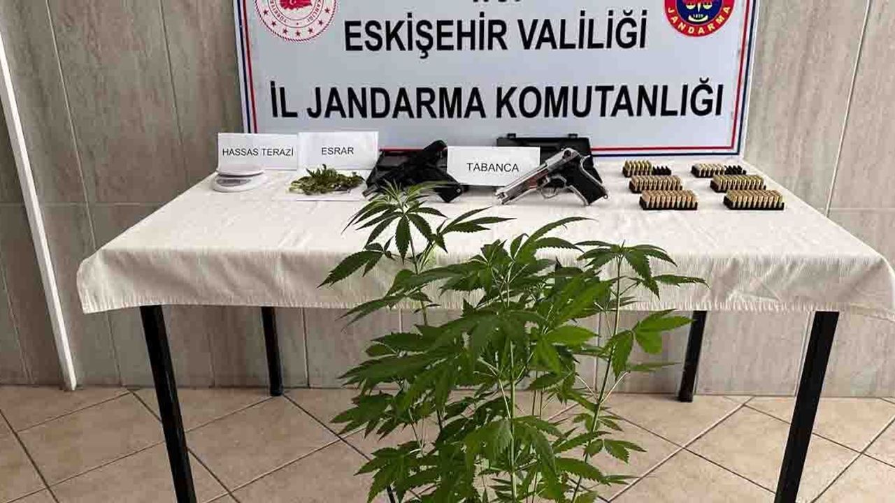 Edinilen bilgilere göre, İl Jandarma Komutanlığı'na bağlı ekipler tarafından Odunpazarı ilçesinde bulunan bir şahsın evinde kenevir bitkisi yetiştirdiği belirlendi. Cumhuriyet Savcısı koordinesinde şahsın evine düzenlenen operasyonda yapılan aramalarda, 10 gram esrar, 8 kök kenevir bitkisi, 1 adet hassas terazi, 1'i kurusıkı olmak üzere 2 adet tabanca, 260 adet tabanca fişeği ele geçirildi.