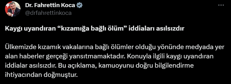 "Kaygı uyandıran “kızamığa bağlı ölüm” iddiaları asılsızdır. Ülkemizde kızamık vakalarına bağlı ölümler olduğu yönünde medyada yer alan haberler gerçeği yansıtmamaktadır.