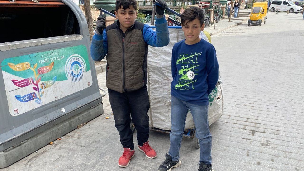 Kendi boyundan büyük el arabasını taşırken bazen zorlandığını belirten Hasan El Helef, "Plastik ve karton topluyorum. Büyük bir el arabası taşıyorum. Bazen zor oluyor ama çalışıyorum, para kazanmak istiyorum. Bir sürü kardeşim var, yaşları küçük. Onlara bakmaya gayret ediyorum. İş olmadığı için ailem çalışmıyor. Mümkünse buradan ailem için iş istiyorum. Çabalamamıza rağmen iş bulamıyoruz" dedi.