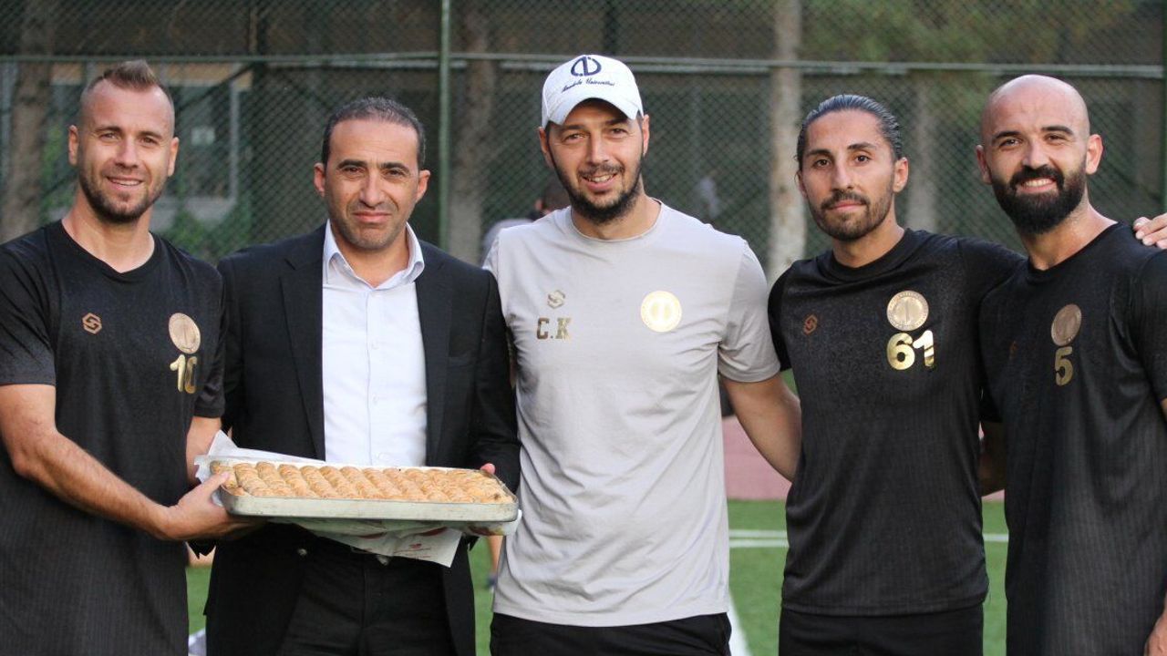 3.Lig temsilcimiz Anadolu Üniversitesi’nde Kahramanmaraş maçı hazırlıkları tüm hızıyla devam ediyor. Ekibin önceki gün gerçekleştirdiği antrenmanın sonrasında tatlı jesti yapıldı. Yönetim kurulu üyesi Yavuz Ertem takıma tatlı ikramında bulundu. Teknik Direktör Caner Karuk, Takım kaptanları Ali Fırat Kasap, Rıdvan Coşkun ve Mesut Saray tatlı jestinde bulunan Ertem’e teşekkür ettiler.