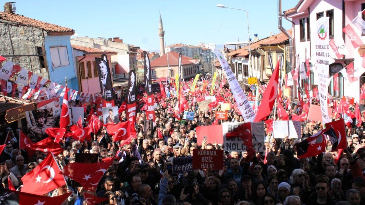 Cumhuriyet Halk Partisi (CHP) İl Başkanlığı ‘Eskişehir Demokrasi Yürüyüşü’ başlığı ile gözaltına alınan İstanbul Büyükşehir Belediye Başkanı Ekrem İmamoğlu’nun destek yürüyüşü gerçekleştirdi. Yürüyüşe siyasi partiler sendikalar da destek verdi. Vatandaşların da yoğun ilgi gösterdiği yürüyüş binlerce kişinin katılımı ile gerçekleşti. Adalar Mevkii’nde bir araya gelen binlerce kişi Odunpazarı Meydanı’na kadar yürüdü. Yürüyüşe katılanlar yaşananlara tepki göstermek amacıyla sloganlar attı. Eylemciler AK Parti Hükümetini istifaya çağırdı. Mitinge, Büyükşehir Belediye Başkanı Ayşe Ünlüce, Odunpazarı Belediye Başkanı Kazım Kurt, Tepebaşı Belediye Başkanı Ahmet Ataç, CHP İl ve ilçe başkanları katıldı.