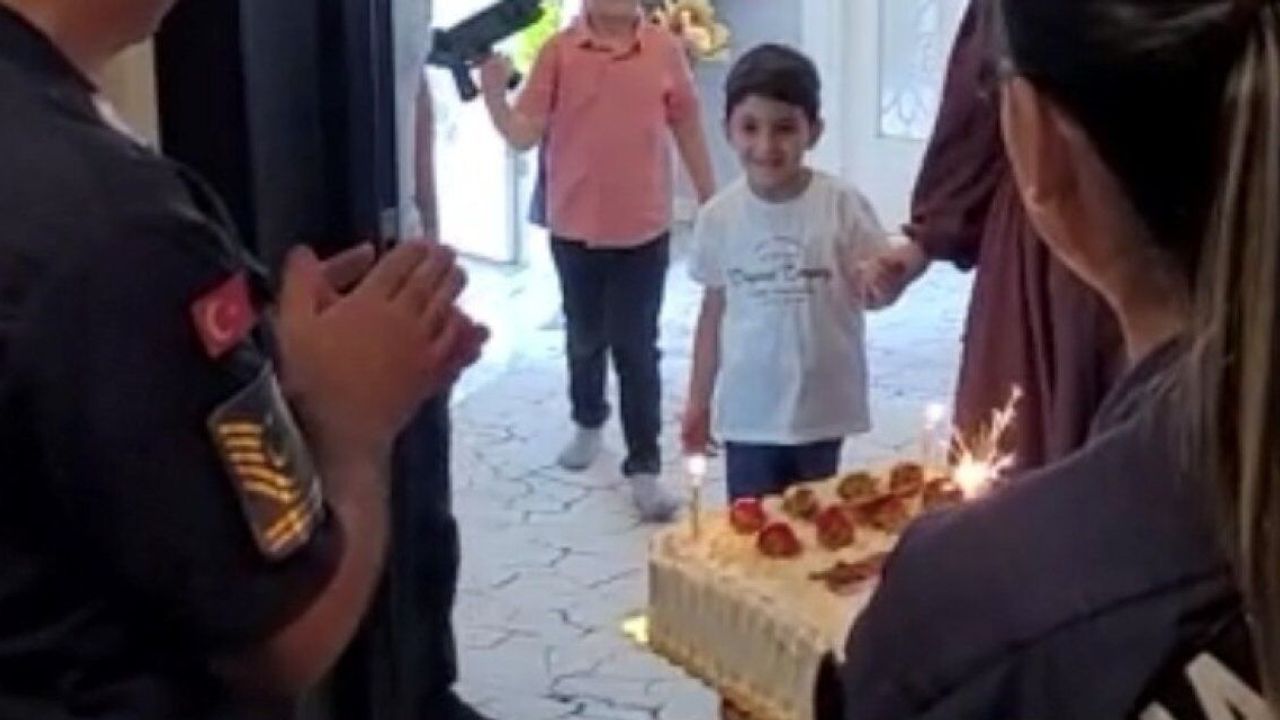 Konya'da jandarma tarafından şehit çocuğuna sürpriz doğum günü kutlaması yapıldı.