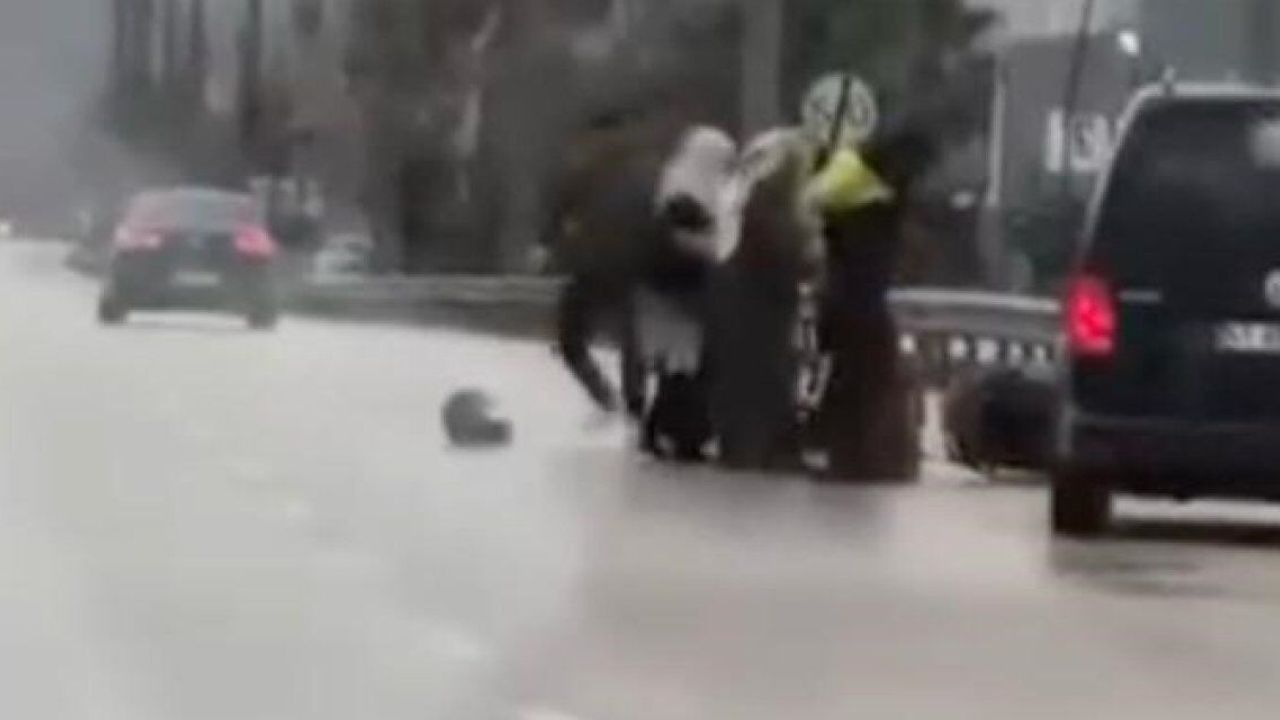 Olay, Kestel ilçesi Barakfakih Mahallesi'nde meydana geldi. Edinilen bilgiye göre, İnegöl Yolu üzerinde ilerleyen motokurye ile hafif ticari aracın sürücüsü arasında sözlü tartışma çıktı. Çıkan tartışma sonrası araçtan inen sürücü motokuryeyi darp etmeye başladı. O anlar kameraya yansırken, kavgayı ayırmaya çalışan kadınların çabası sonuç vermedi. Bir çocuk ise olan bitenleri şaşkınlıkla izledi.
