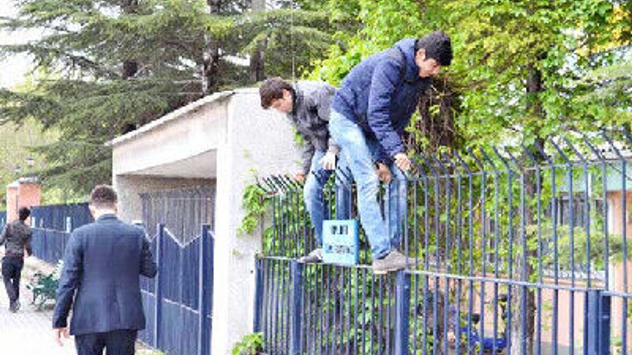 Lise de öğrenci giriş çıkış kapısı güvenlik amacıyla kapatılarak, şehitlik yakında bulunan kapıya alındı. Sınıflar gelip gitme mesafesi uzayan öğrenciler çareyi demir parmaklıkların üzerinden atlamak da buluyor. Yeni başlatılan uygulamanın ardından oluşan görüntüler ise yürekleri ağızlara getiriyor.