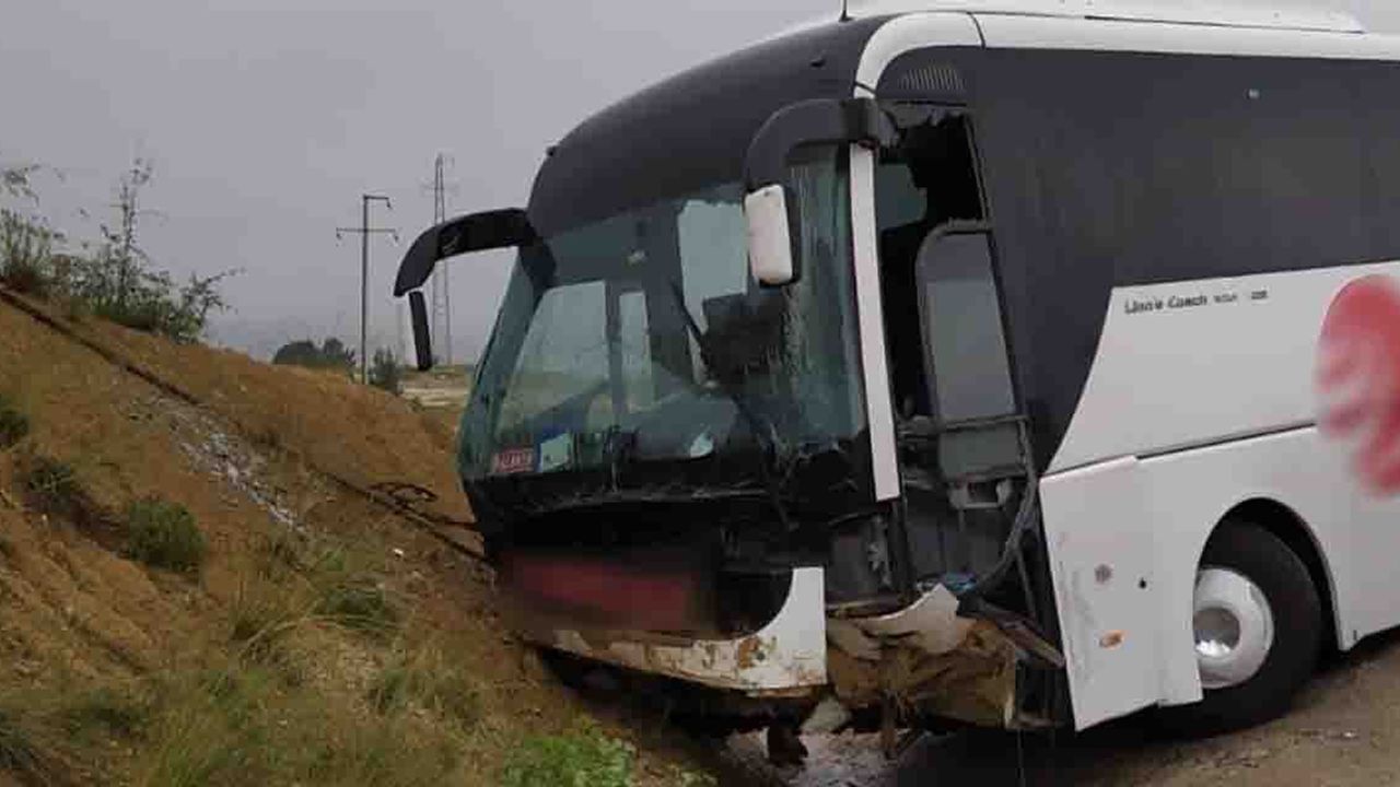 Alınan bilgiye göre, Denizli’den Antalya’ya gelmekte olan Pamukkale firmasına ait Filiz C. (50) yönetimindeki otobüs, yağmur nedeniyle kayganlaşan yolda kontrolden çıktı. Otobüs şarampolde bulunan toprak yığınına vurarak durabildi.