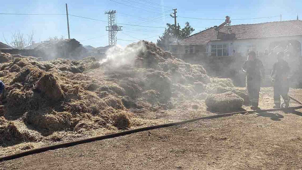 Yangın sonrası 750 adet saman balyasının zarar gördüğü belirtildi. Yangının çıkış nedeni araştırılıyor.