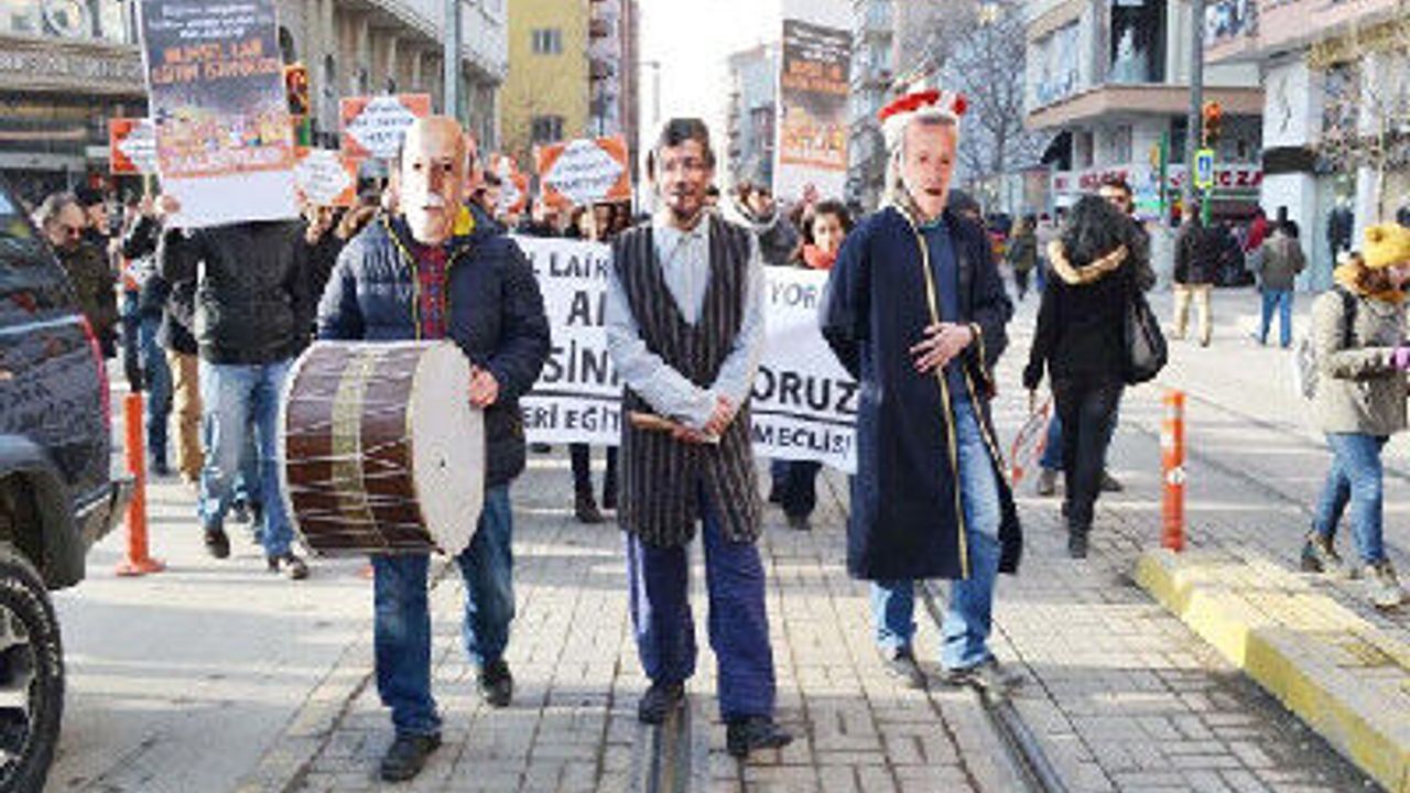 Eskişehir Halk Evleri tarafından 2014-2015 eğitim ve öğretim yılının birinci dönemi sona ererken eğitim sistemine karşı eylem düzenlendi. Bir alışveriş merkezi önünde toplanan gruptan bazı kişiler yüzlerine Cumhurbaşkanı...