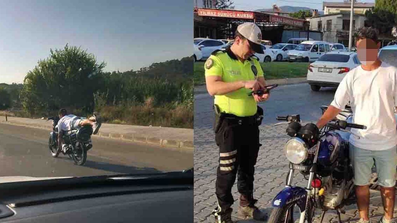 Muğla'nın Fethiye ilçesinde genç bir sürücü motosiklet üzerinde yatarak yaptığı sürüş sonrası hem motosiklet gitti, hem de 7 bin 558 TL ceza yedi.