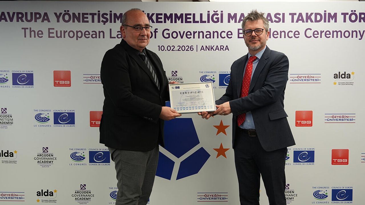 ELoGE 2025 Ödül Töreni, Ankara’da Türkiye Belediyeler Birliği ev sahipliğinde düzenlendi. Törende, Avrupa Yönetişim Mükemmelliği Markası’nı bir yıl süreyle kullanma hakkı kazanan belediyelere ödülleri takdim edildi. Odunpazarı Belediyesi adına törene Başkan Yardımcısı Uğur Haluk Durdağ katıldı.