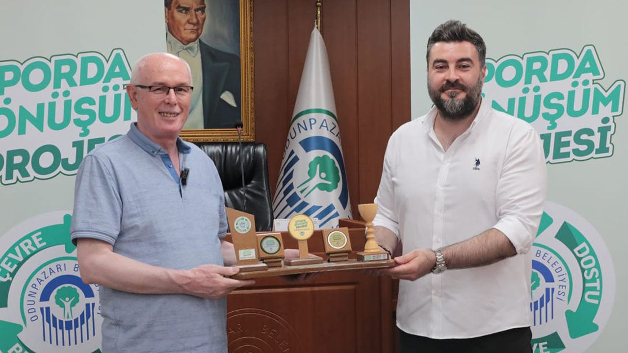 Spor işleri Müdürlüğü Sıfır Atık Sporda Dönüşüm Projesini, Odunpazarı Belediyesi Meclis Salonunda Odunpazarı Belediye Başkanı Kazım Kurt’ta tanıttı. Proje sunumunun ardından, Park ve Bahçeler Müdürlüğü atölyelerinde ahşaptan yapılan madalya, kupa ve plaketleri inceleyen Başkan Kurt, Spor İşleri Müdürlüğü’nün yıl içinde pek çok madalya, kupa ve plaket dağıtımı gerçekleştirdiğine dikkat çekti. Bu madalya, kupa ve plaketlerin büyük meblağ tutan bir bütçe oluşturduğunu vurgulayan Başkan Kurt, “Hem çevreye olan saygımızdan hem tasarrufa verdiğimiz önemi de dikkate alarak Park ve Bahçeler Müdürlüğü atölyelerimizde atık durumdaki ahşapları madalya, kupa ve plakete dönüştürüyoruz. Emeği geçen herkesi tebrik ediyor ve kolay gelsin diyorum. Tasarruf yaptığımız her alan bize yeni kaynaklar yaratma şansı doğuruyor. Şuanda yapılan hesaplara göre 500 bin TL tasarruf yapmak bile büyük bir başarı. Hiç kimse de gelip bize 500 bin TL’yi vermez. Bu düşünceyi hayata geçiren bütün ekibi kutluyor ve bundan sonra daha farklı alanlarda bu işin devam etmesini diliyorum. Hem çevreye olan saygımızın hem de tasarrufa olan inancımızı bir kez daha vurguluyoruz. Bütün müdürlüklere örnek olsun. Diğer müdürlüklerimizden de böyle projeler bekliyorum” dedi.