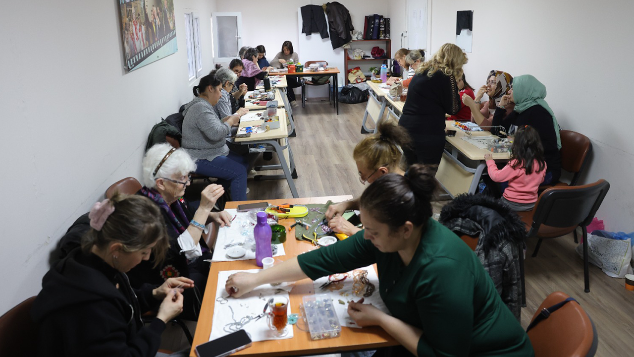 Odunpazarı Belediyesi, 75. Yıl Mahallesi’nde bulunan Selami Vardar Halk Merkezi’nde düzenlenen takı atölyesi, kadınların hem meslek edinmesine hem de sosyal hayata daha aktif katılım sağlamasına katkı sunuyor.