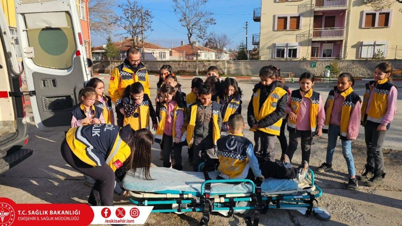 Eskişehir'de İl Ambulans Servisi ekipleri, 112'nin acil durumlarda doğru ve etkin bir şekilde nasıl kullanılacağı hakkında ilkokul öğrencilerine yönelik bilgilendirme yaptı.