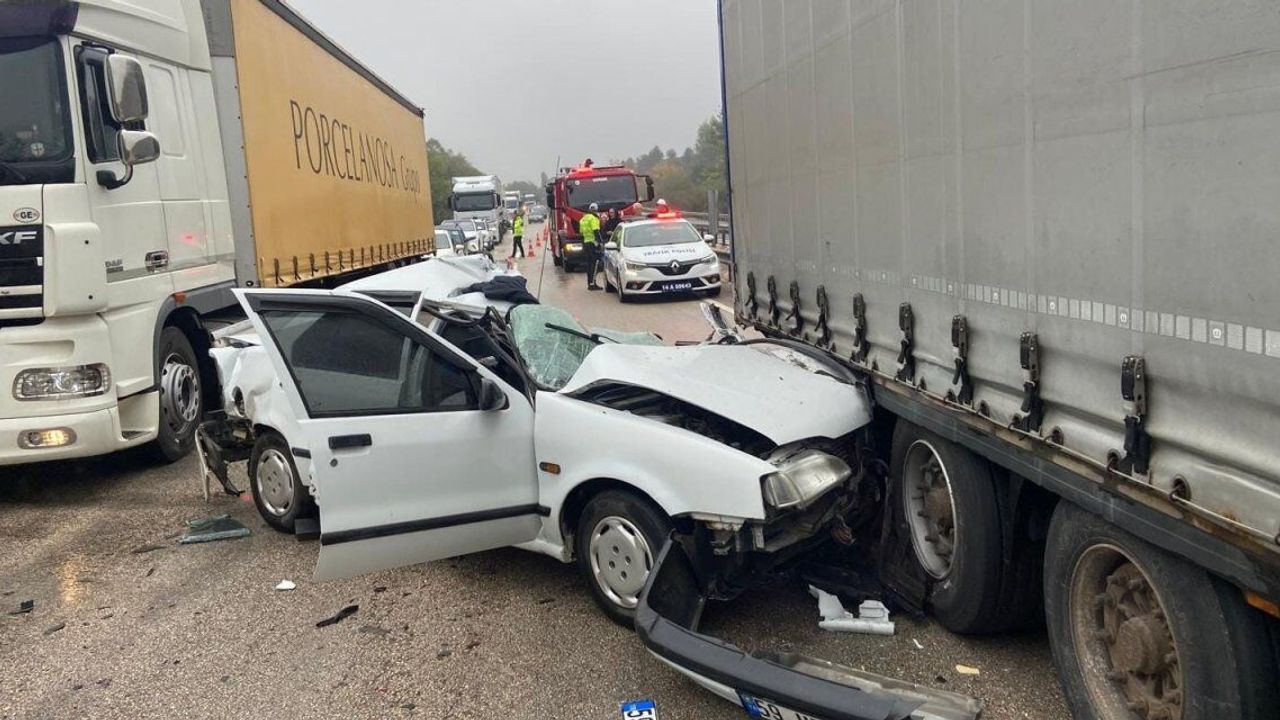 Kaza, K-100 karayolu Gerede ilçesinde meydana geldi. Edinilen bilgiye göre, Karabük istikametinde seyreden J.L. yönetimindeki yabancı plakalı tır, M.K. idaresindeki 34 NV 2995 plakalı hafifi ticari araçla çarpıştı. Bu sırada aynı istikamette ilerleyen H.T'nin kullandığı 59 UB 099 plakalı otomobil de kaza nedeniyle yol kenarında duran tıra arkadan çarptı. Meydana gelen kazada otomobil sürücü H.T. otomobil içerisinde sıkıştı. İhbar üzerine kaza yerine polis, sağlık ve itfaiye ekipleri sevk edildi. Otomobilde sıkışan sürücü, Gerede Belediyesi İtfaiye Müdürlüğü ekiplerinin müdahalesiyle kurtarıldı. Kazada ağır yaralanan otomobil sürücüsü, ambulansla Gerede Devlet Hastanesine kaldırıldı.