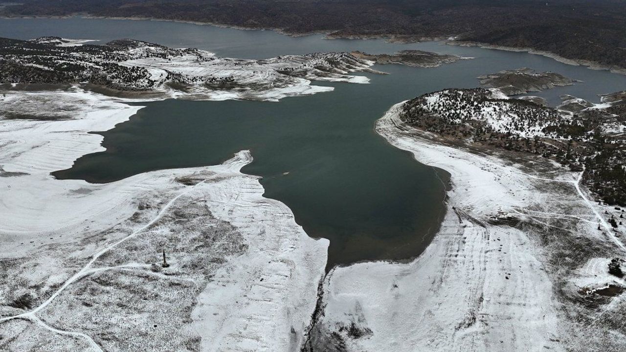Eskişehir'in içme ve kullanma suyunun sağlanması ile sulamada kullanılan 454 milyon metreküp işletme hacmine sahip Kütahya'nın Kalburcu Çiftliği Mahallesi'nde bulunan Porsuk Barajı'nın karla kaplı hali dronla görüntülendi. Beyaza bürünen baraj manzarası güzel görüntüler sundu. Fakat 2024 yılının Nisan ayında aynı noktadan çekilen görüntülerle şu ankiler karşılaştırıldığında, kışa rağmen geriye çekilen su göze çarptı. Geçtiğimiz Ağustos ayında ise Porsuk Barajı'nın doluluk oranı yüzde 35 olarak açıklanmıştı.