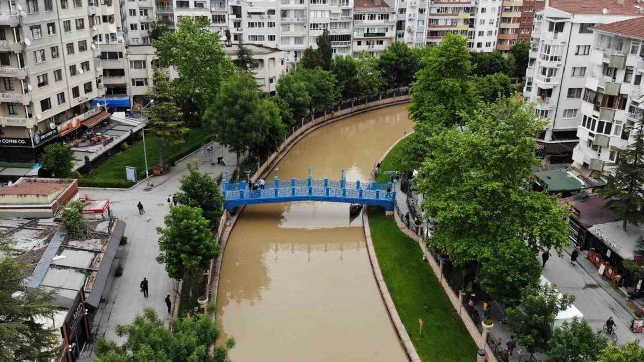Son günlerde Eskişehir ve çevresindeki illeri etkisi altına alan sağanak yağışlar sonrası Porsuk Çayı renk değiştirirken, manzarayı gören vatandaşlar "kahve" benzetmesi yaptı.