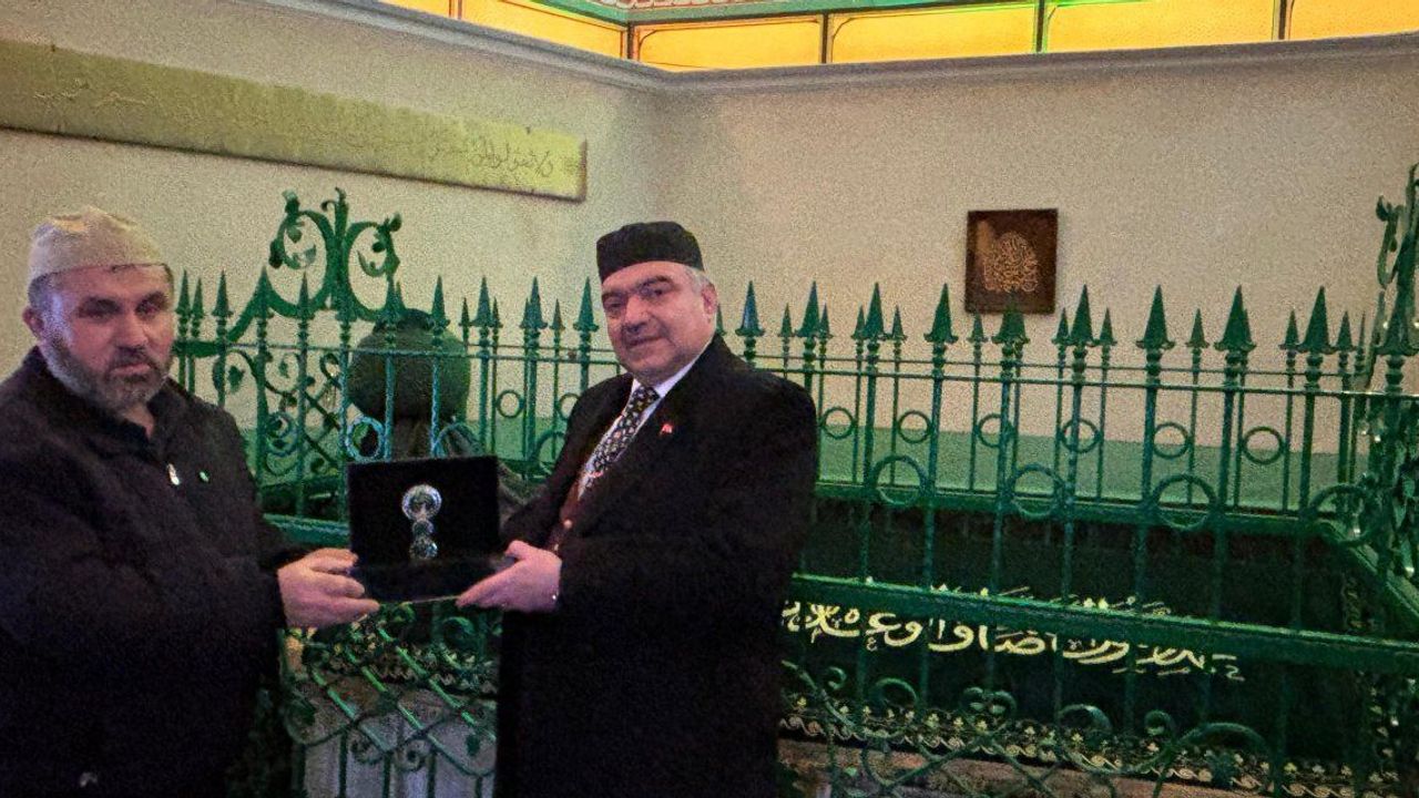 Bolu'nun Tekke Işıklar köyünde bulunan Seyyid Ümmi Kemal Hazretleri Türbesi'ne, özel muhafazalı kutusu ve 40 kat bohçasıyla Sakal-ı Şerif hediye edildi.