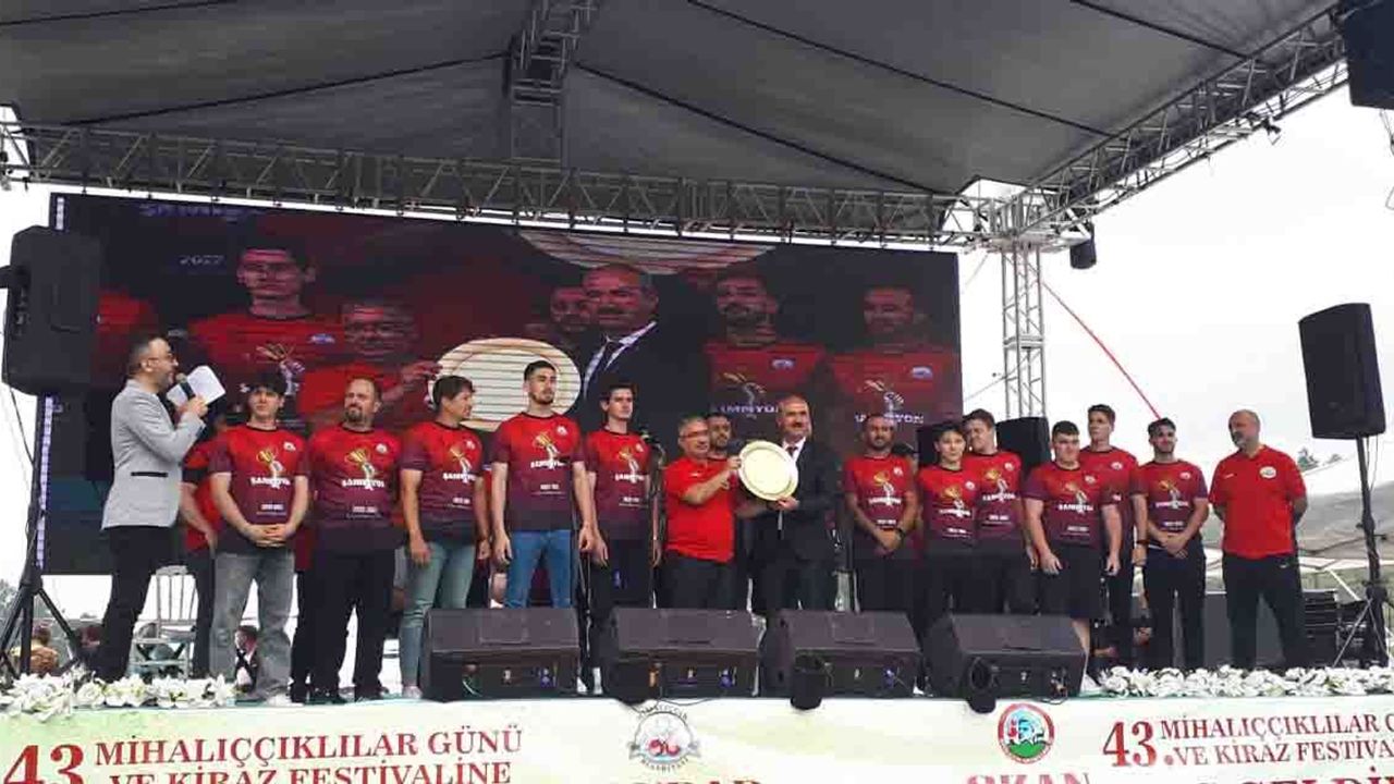 Geleneksel olarak düzenlenen Mihalıççık Kiraz Festivali’ne katılan teknik heyet ve oyuncular burada ödüllendirildi. Tek tek kürsüye çağırılan oyuncuları ve teknik ekibi kutlayan Belediye Başkanı Haydar Çorum, günün anısına takıma plaket takdim etti.