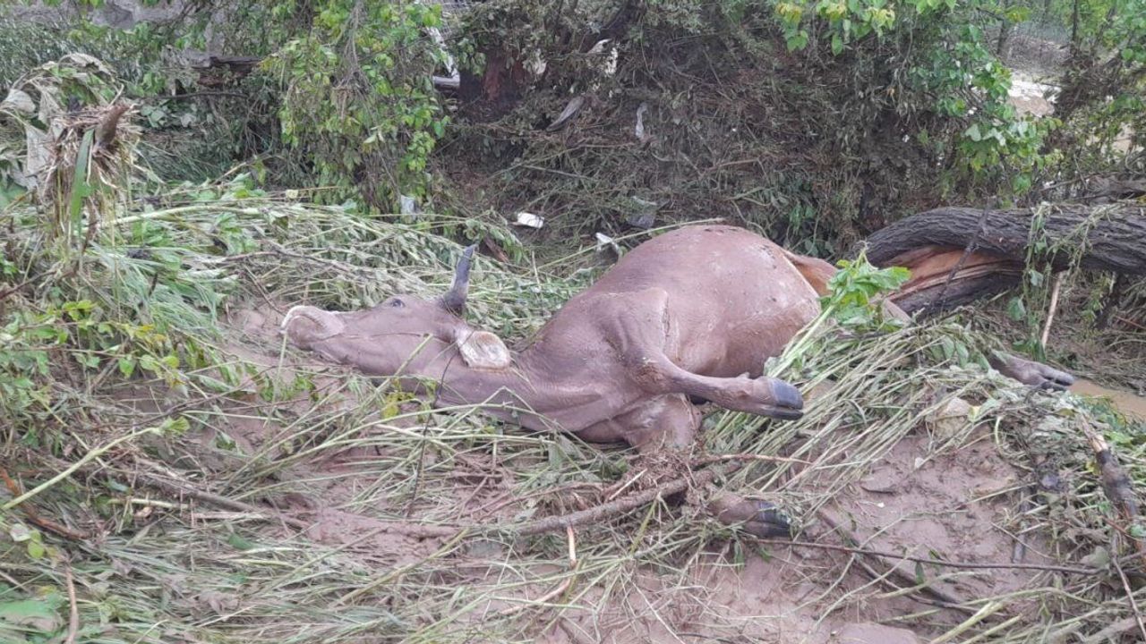 Çorum'da sağanak yağış ve dolu sele neden oldu. Sel sularına kapılan 2 büyükbaş hayvan telef olurken, suların altında kalan yüzlerce dönüm tarım arazisi zarar gördü.