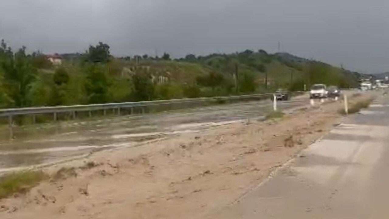 Çorum'un Sungurlu ilçesinde etkili olan kuvvetli sağanağın ardından sel sularının bastığı Ankara-Çorum karayolunda sürücüler zor anlar yaşadı.