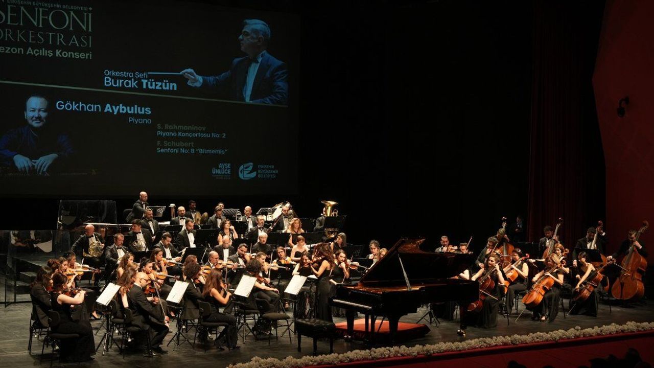 Eskişehir Büyükşehir Belediyesi Senfoni Orkestrası 2025-2025 Sezonu konserinin ilk bölümünde, romantik dönem Rus bestecilerinden S. Rahmaninov’un başyapıtlarından biri olan 2 numaralı piyano konçertosu seslendirildi. İlk kez 1901 yılında Moskova’da bestecinin kendi solistliğinde icra edilen ve o günden bu yana klasik müzik repertuvarının vazgeçilmezleri arasında yer alan eser teknik zorlukları ve derin duygusal anlatımıyla dikkat çeken eserlerden biridir. Gökhan Aybulus’un yorumuyla hayat bulan konçerto, salondaki dinleyicilerden büyük beğeni topladı. Dinmeyen alkışları karşılıksız bırakmayan sanatçı J.S. Bach’ın A.Siloti tarafından düzenlenen prelüdü ile bis yaptı.