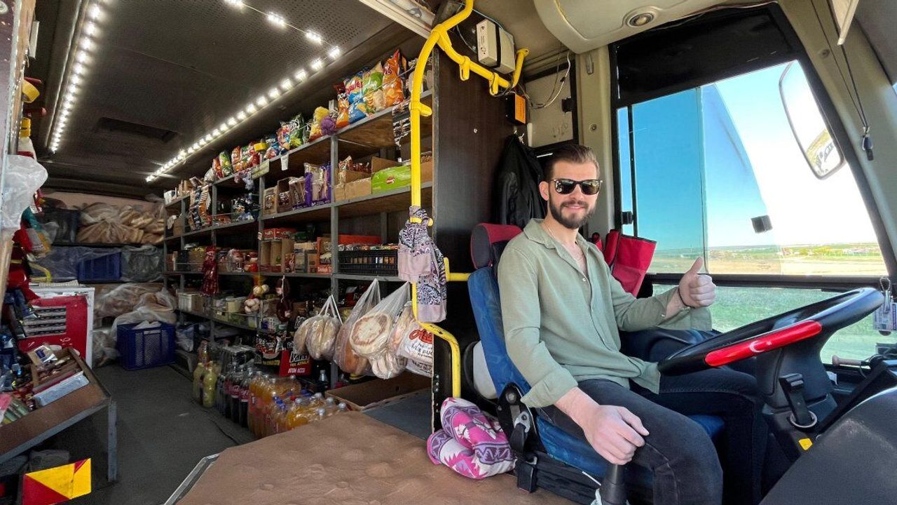 "Kışın işlerimiz daha sakin, yazın çok canlı ve hareketli oluyor. Kışın daha çok karlı ve çamurlu yollardan geçtiğim için biraz mücadele istiyor, zorluyor baya. Pazartesi ve Perşembe hariç haftanın 5 günü çalışıyorum. Köylerde özellikle hayvancılık yoğun olduğu için tabii köpekleri de var, onlara poşet poşet ekmek götürüyorum. Onun dışında seyyar marketimizde tüp, çocuklar için dondurma çikolata gibi sevdikleri şeyler ve diğer tüm temel ihtiyaçlar satılıyor. Ayrıca özel bir istekleri olursa da söylüyorlar, bir sonraki gün getiriyorum. Herkesin ihtiyacını karşılamaya çalışıyoruz, aslında herkesin ayağına hizmet gibi oluyor. Bu otobüs daha öncesinde de köylerde çalışıyormuş; şansıma bana çok iyi denk geldi. İçi de zaten hazır ve yapılıydı, ben sadece dekorasyon anlamında birkaç şey ekleyip toparladım ve bu hale getirdim. Sabit dükkânımız üzerinden devam ettiğimiz için araba temel gıda satış aracı olarak geçiyor, projesi falan da çizilmiş. Ayrıca marketimizde kredi kartı da geçiyor."